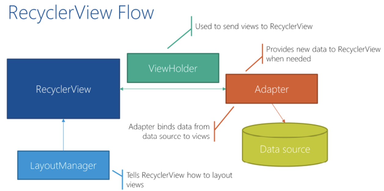 recycler view는 모든 객체를 새롭게 만들고 삭제하고 하는 과정을 제거하고 재 사용하여 버벅임을 없앴습니다.