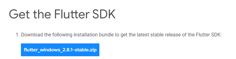Windows의 경우 아래 flutter_windows_2.8.1-stable.zip을 download 합니다.