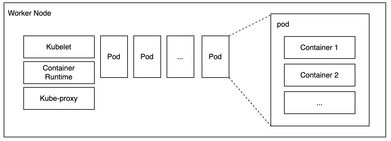 다음은 워커 노드의 주요 구성을 나타냅니다.