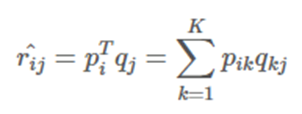이후, R 내 빈곳 (no rating)을 Q row와 R column의 내적으로 예측한다.