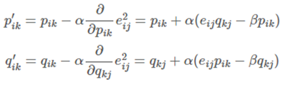 self.P[i, :] += self.alpha * (e * self.Q[j, :] - self.beta * self.P[i,:])