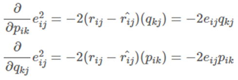 self.Q[j, :] += self.alpha * (e * self.P[i, :] - self.beta * self.Q[j,:])