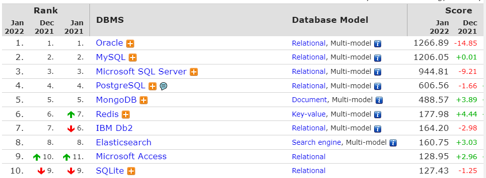 1985년 개발이 시작되어 1996년에 첫 출시가 되었으며 https://db-engines.com/en/ranking 에서 볼 수 있듯이 현재 4위에 rank 되어 있습니다.